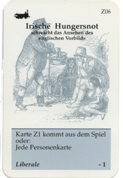 Max spielt seine Karte "Irische Hungersnot" gegen Sophies Kartenhand. Sie hat keine Auswirkungen, da Anton von Schmerling zum Reaktionär erklärt worden ist. Max möchte aber im Spiel bleiben und nicht passen. Außerdem möchte er vor Beginn der nächsten Spielrunde eine neue Zusatzkarte ziehen.
