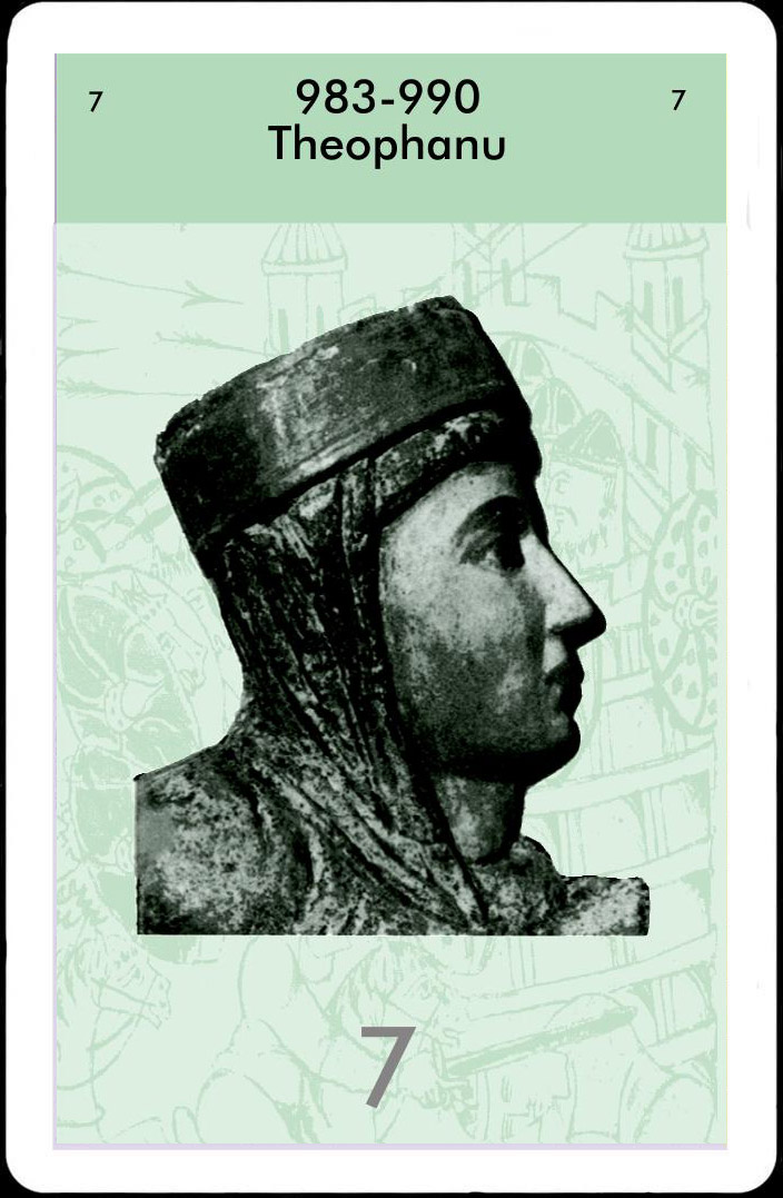 Theophanu (andere Schreibweisen des griechischen Namens: Theophano und Theophania) wurde zwischen 950 und 955 in der kaiserlichen Familie von Byzanz, aber wohl nicht als Tochter des regierenden Kaisers geboren. Am 14. April 972 heiratete sie Otto II. in der Peterskirche in Rom und wurde dort vom Papst als Kaiserin gekrönt. Zwischen 983 und 991 führte sie die Regentschaft für ihren Sohn Otto III., zeitweise gemeinsam mit Adelheid, dem Erzbischof Willigis von Mainz und dem Bischof Hildebrand von Worms. Sie starb am 15. Juni 991 in Nimwegen (niederländisch Nijmegen, Provinz Gelderland). Ihr Grab befindet sich in St. Pantaleon in Köln.